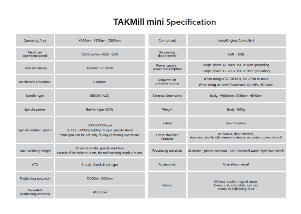 TAKMill mini คือเครื่อง CNC Milling แบบตั้งโต๊ะจากบริษัท Iwama ประเทศญี่ปุ่น ที่ถูกออกแบบมาเพื่อรองรับการใช้งานในทุกระดับ ไม่ว่าจะเป็นผู้เริ่มต้นใช้งานเครื่องจักร CNC นักพัฒนาชิ้นงานต้นแบบ หรือมืออาชีพในอุตสาหกรรมแม่พิมพ์ ด้วยฟังก์ชันอัจฉริยะและความสามารถในการทำงานที่แม่นยำสูงในขนาดเครื่องที่กะทัดรัด